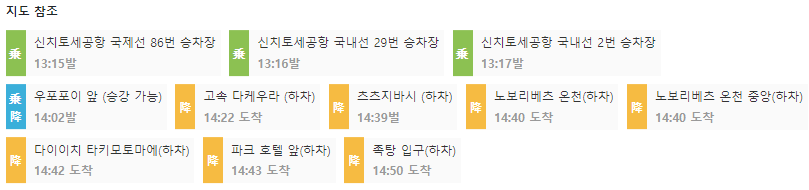 14시 42분에 '다이이치 다키모토 마에(第一滝本前)'에서 하차 할 예정이다. (예약한 '오야도기요미즈야' 와 도보 3분거리)