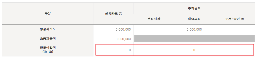신용카드 외 추가공제(전통시장,대중교통,도서공연 등)가 있는데, 추가공제에서 한도미달액이 뜬다고 한다면