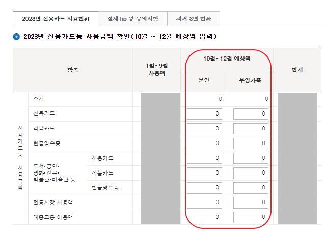 한도미달액을 신용카드, 추가공제 둘다 0으로 만들어준다면 공제한도 끝까지 다 받았다는 것을 의미합니다.