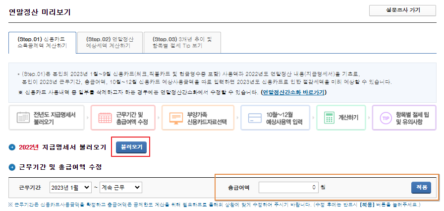 2. step 연말정산 예상세액 계산하기