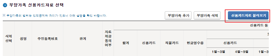 2) [신용카드자료 불러오기]