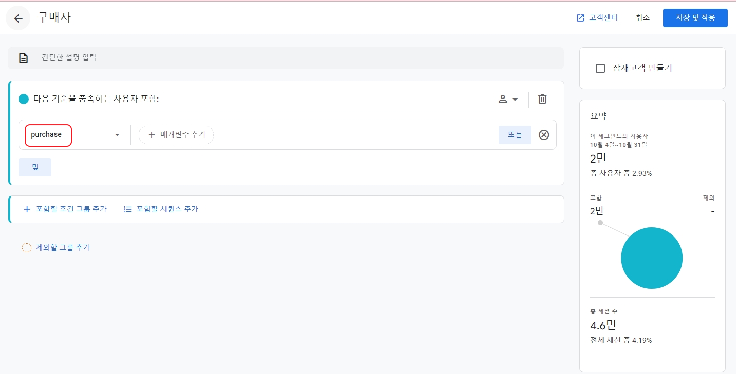 (세그먼트를 만드는 김에 잠재고객을 같이 만들어서 활용하면 좋아요!)