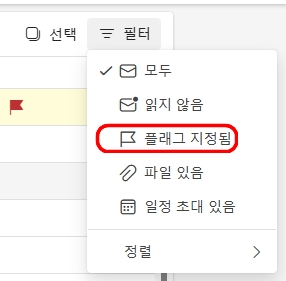 2) 중요한 메일은 플레그(깃발) 꽂아두기