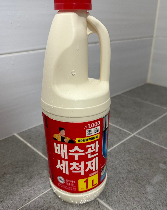 그래서 저는 우선 가장 저렴한 천 원짜리 배수관 세척제를 사서 효과가 있는지 테스트해보았습니다.