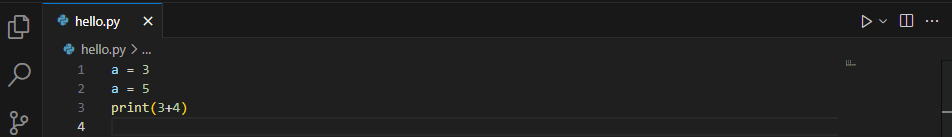 | >>> a = 3 >>> b = 4 >>> print(a+b) 7 |