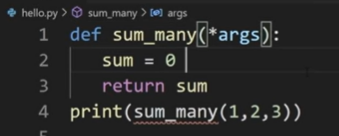 *args 라고 쓰면 몇개든 상관없이 다 담을 수 있다