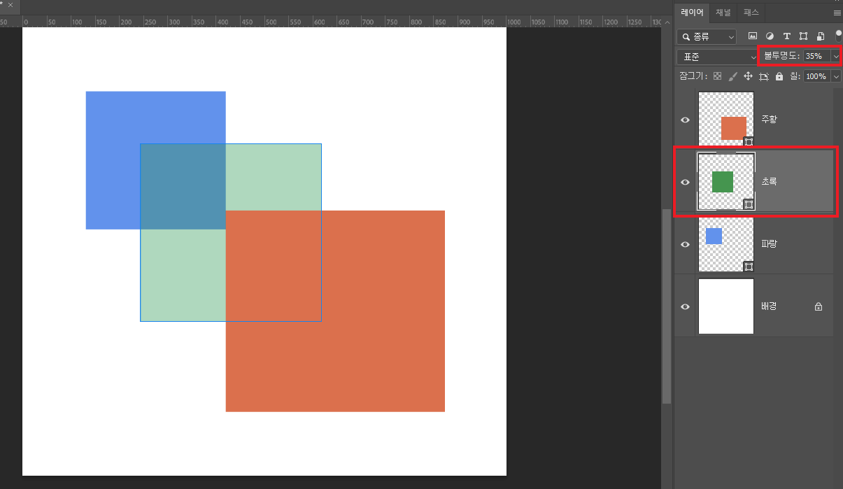 👉 레이어마다 투명도 설정이 가능합니다