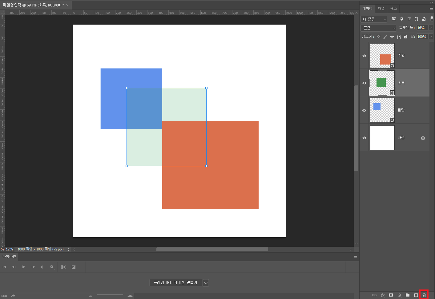 👉 레이어를 삭제하고 싶다면 레이어 끌어다가 우하단 휴지통 모양으로 끌어주세요