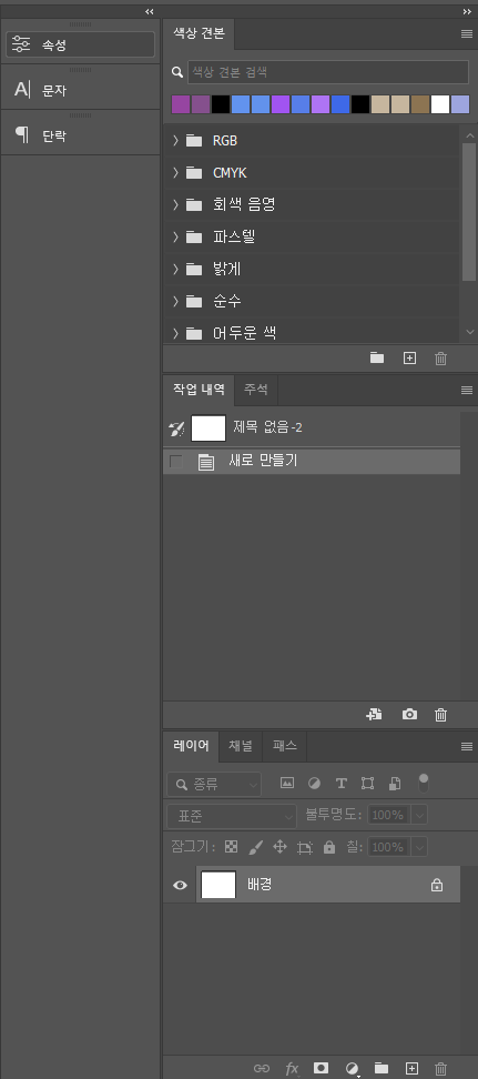 ⭐ Swatches(색상 견본), Properties(속성), character(문자), paragraph(문단)