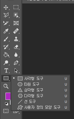 ㄴ 도구탭에서는 사각형으로 보이지만, 마우스오버 하면 여러가지 도형을 확인할 수 있어요