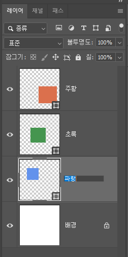 ㄴ 지금은 레이어가 적어서 한 눈에 보이지만, 레이어가 많아지면 복잡해지기 때문에 이름을 설정해서 구분해야 합니다