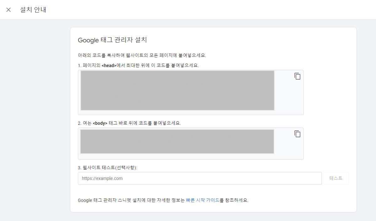 2)웹사이트 코드에 직접 태그 코드를 설치하는 수동 코드 설치