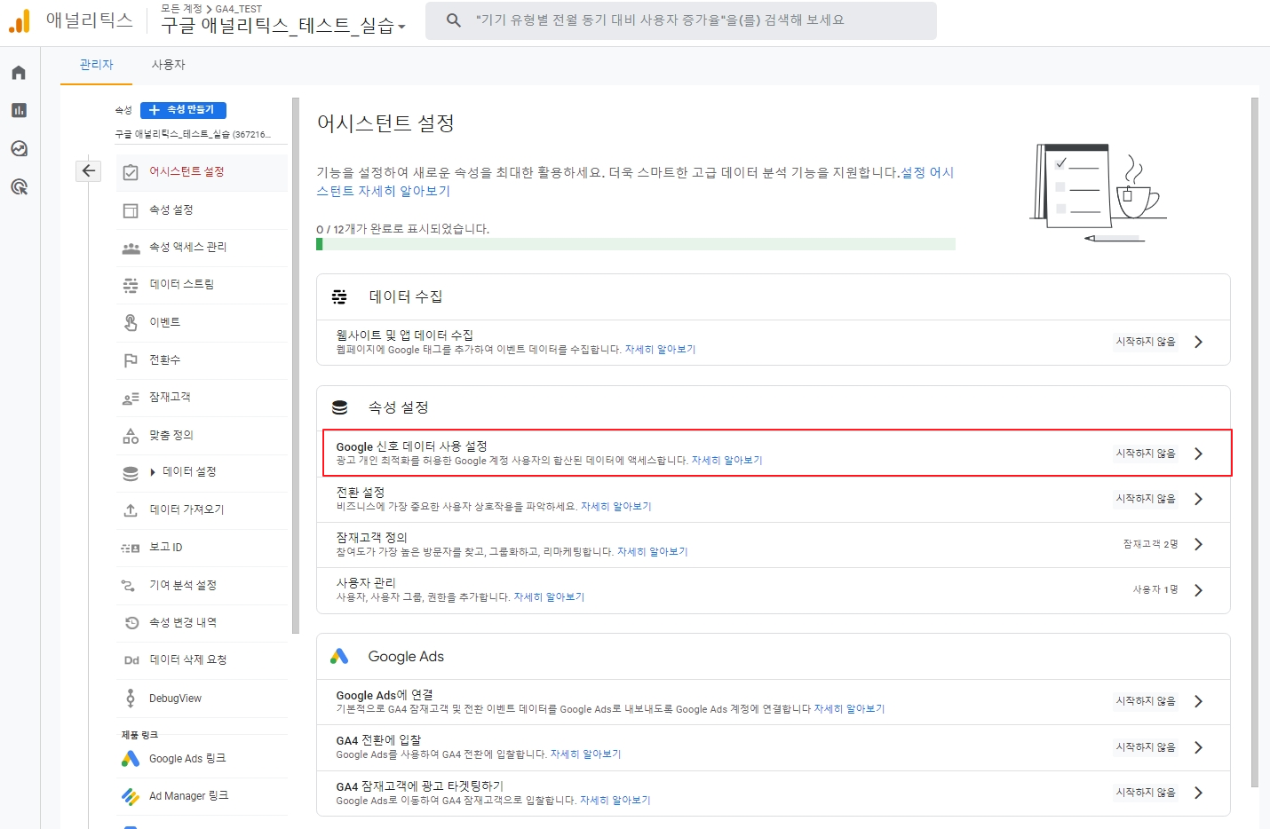 GA4가 사용자의 구글 신호 데이터를 불러올 수 있도록 활성화해 주는 것이 중요합니다.